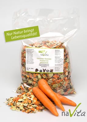 Mit NaVita-Gemüsemix-mit-Kräutern und den naVita-Kartoffelflocken können bei Bedarf die Menüs sowie das NaVita-Pferdefleisch zusätzlich ergänzt werden.