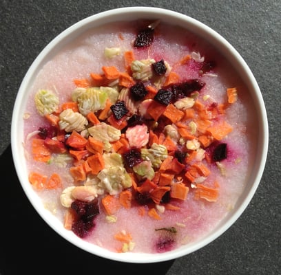 Kartoffeln, Rüebli, Spinat, Kürbis, Äpfel, Preiselbeeren, Hagebutten u.a. und Algen in verschiedenen Varietäten einzusetzen. Das Beste für die Gesundheit Ihres Tieres.