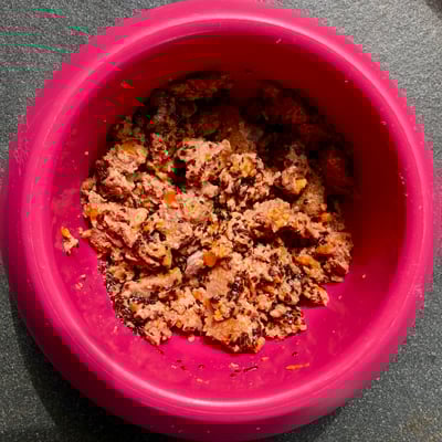 NaVita-Fleischmenüs können, wenn gewünscht, mit einem Anteil Trockenfutter ergänzt und gefüttert werden.