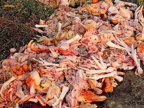getrocknete und zermahlene Nebenerzeugnisse der angegebenen Tierart. Federn, Schnäbel, Füsse, Klauen, Knochen und Hühnerkot.